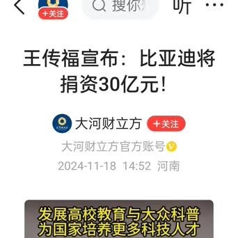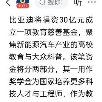 被称作“卷王”的王传福在比亚迪建筑30周年暨第1000万辆新动力汽车下线举止上,提到了要捐赠30亿熟习基金,四肢新动力的熟习和全球科普的资金,培养更多的科技东谈主才和工程师。这真实是大爱无疆啊!