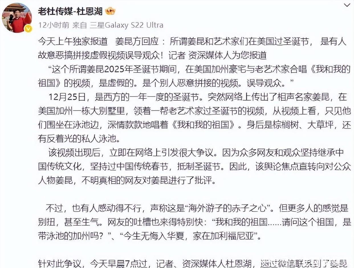 前阵子有段视频传出来,说姜昆在外洋的豪宅里唱着红歌庆祝圣诞节。