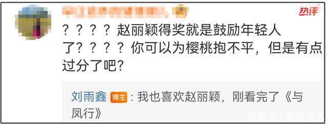 殷桃好友刘雨鑫一句“饱读吹年青东说念主”险些扫射通盘提名者,只消履历比殷桃老的刘琳避免。最终获奖的赵丽颖手脚从流量转型的85花更是引来不少网友坏心吐槽,认为她不该拿奖,坏心推测她背后是不是有东说念主运作,公然质疑奖项的泰斗性。00后女演员李庚希也被吐槽演技烂,不配提名。