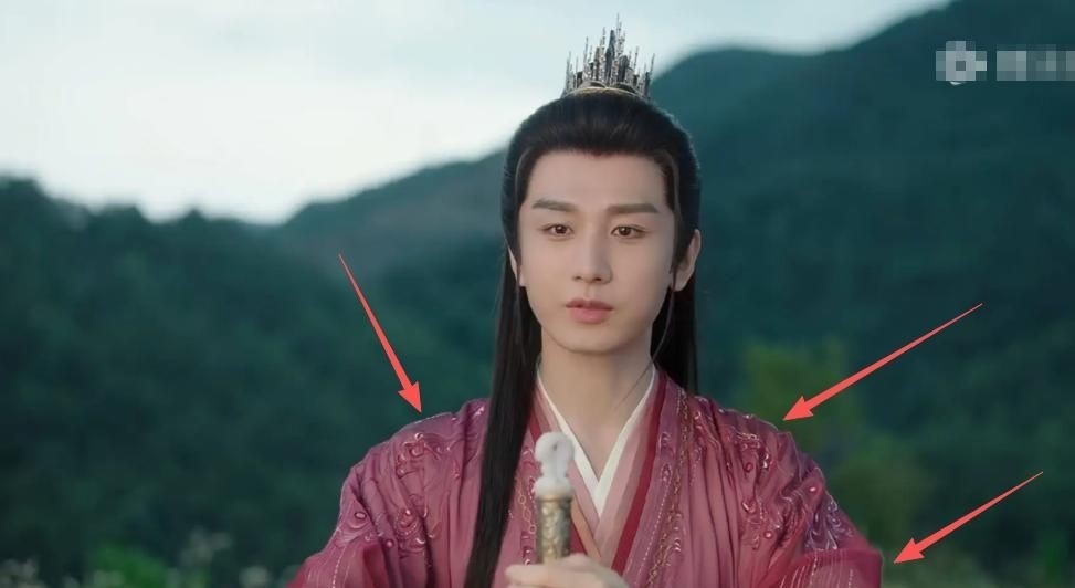 再看《赴山海》中的成毅,穿戴粉色镶钻的服装,脸上清白无瑕,眼妆油腻,全体造型充满“女性气质”。