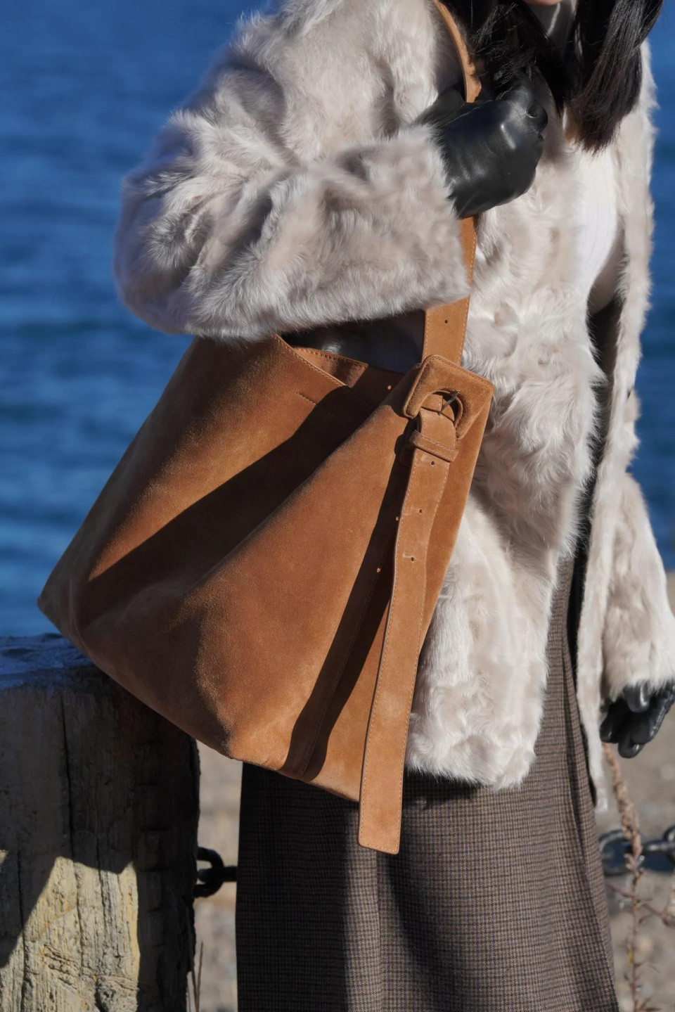 你也不错换上伶仃洁白的白色大衣,脚踏驼色长靴,手提这只棕色圆筒。在镜头下,它即是那一抹最动东谈主的暖色,片刻将冬日的氛围感拉满。