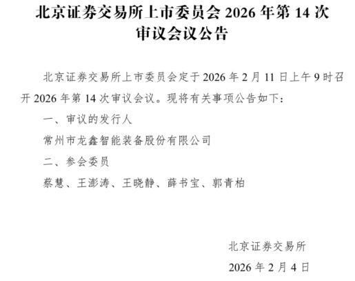 据悉,常州市龙鑫智能装备股份有限公司定于2026年2月11日上昼9时请求北交所上会,保荐机构为中信建投证券。行为国度级专精特新要点“小巨东说念主”企业,龙鑫智能深耕智能装备限制二十余年,这次上会既是企业发展的紧迫里程碑,也将全面展现其全链条智造的中枢实力与行业价值。